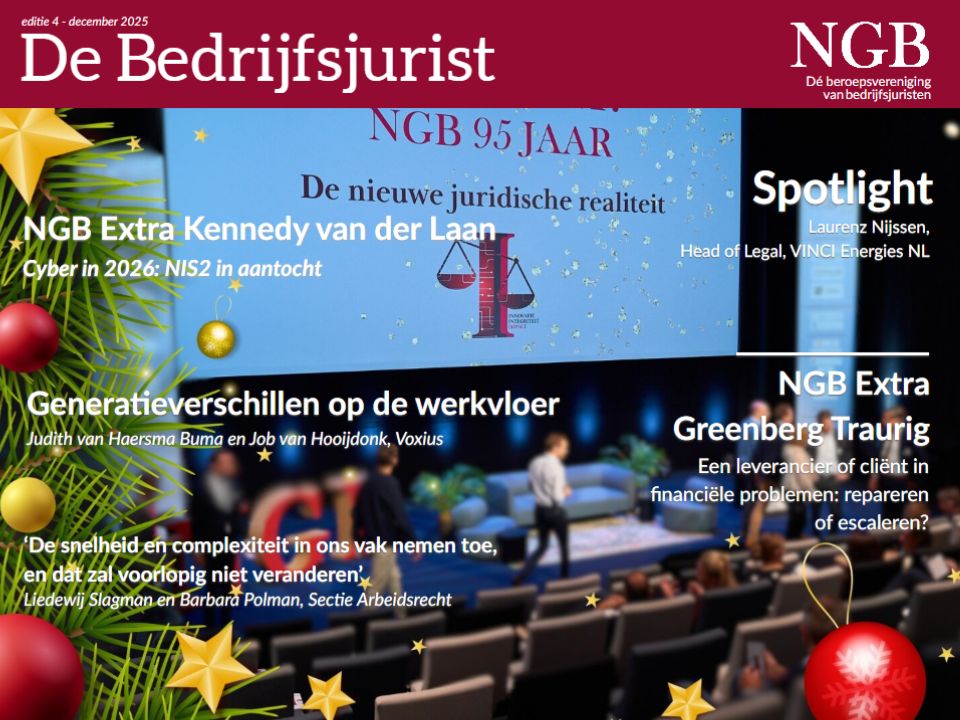 In dit nummer onder meer een interview met Jasper Langezaal, NGB-bestuurslid, de NGB Extra artikelen: ‘Afgebroken onderhandelingen in dynamische tijden’ en ‘ESG in de bedrijfsorganisatie’. En in de spotlight staat Sanne Sprong, Legal counsel bij Rabobank.