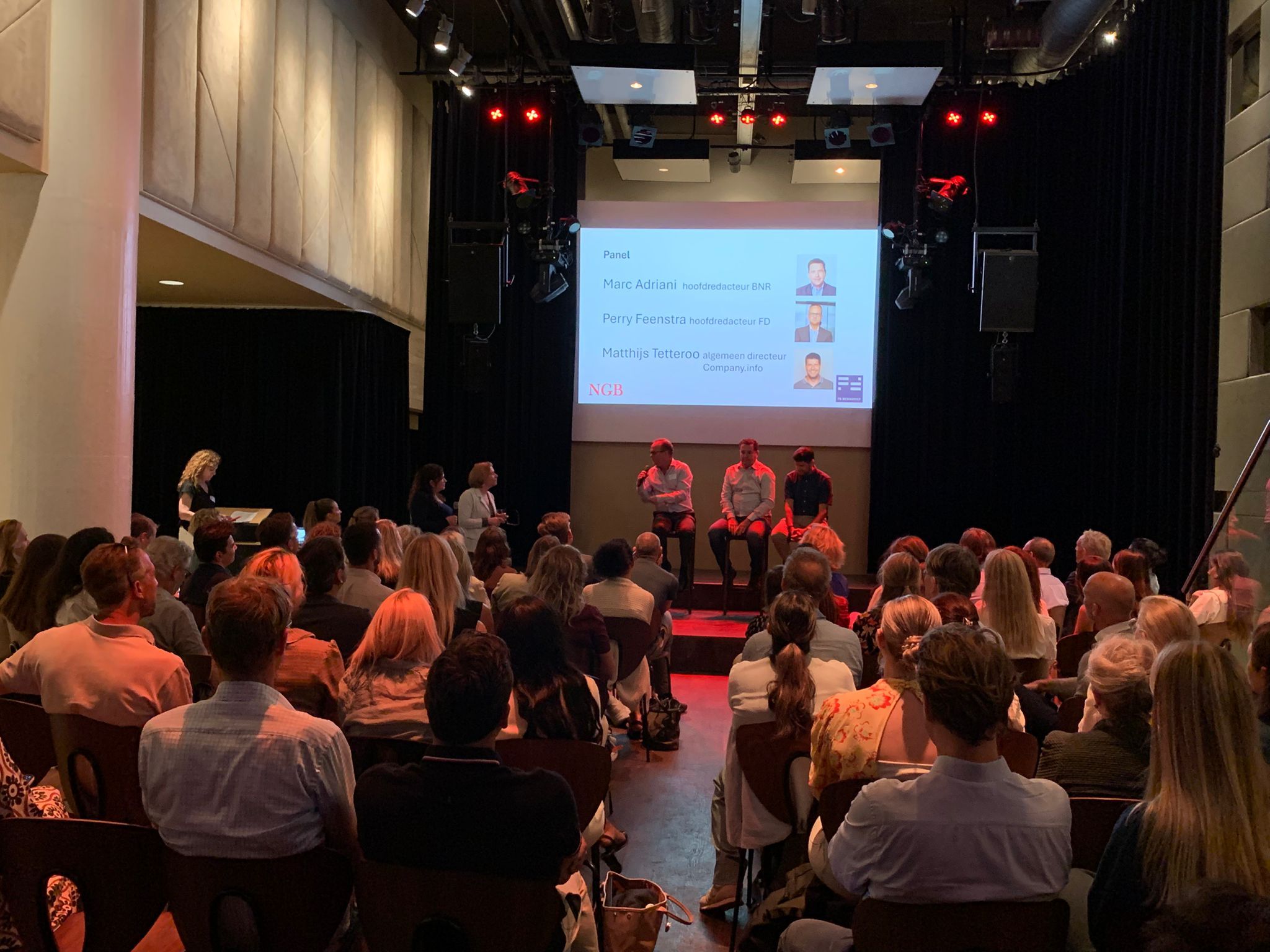 Na Moniques keynote was het tijd voor de paneldiscussie met mediaprofessionals Perry Feenstra (FD), Marc Adriani (BNR) en Matthijs Tetteroo (Company.info). Zij kregen allereerst de gelegenheid om kort te reageren op de keynote en gingen vervolgens met elkaar, en de zaal, in gesprek over het spanningsveld tussen transparantie, toezicht en vertrouwen.