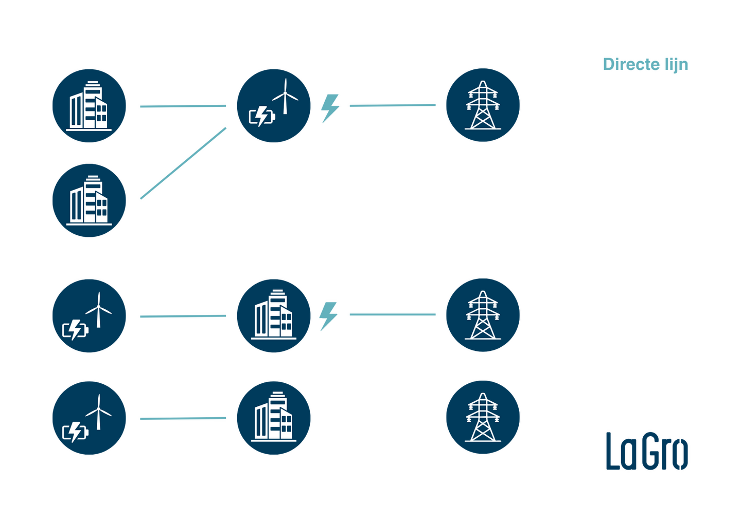 Bij een directe lijn levert één (grote) opwekker van elektriciteit direct aan één of meerdere (grote) eindafnemers van elektriciteit. Er zijn twee vormen van een directe lijn[6], de directe lijn is: