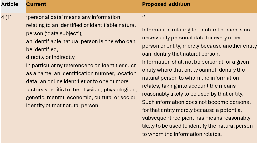 Figure 1: current and proposed article 4(1) GDPR.